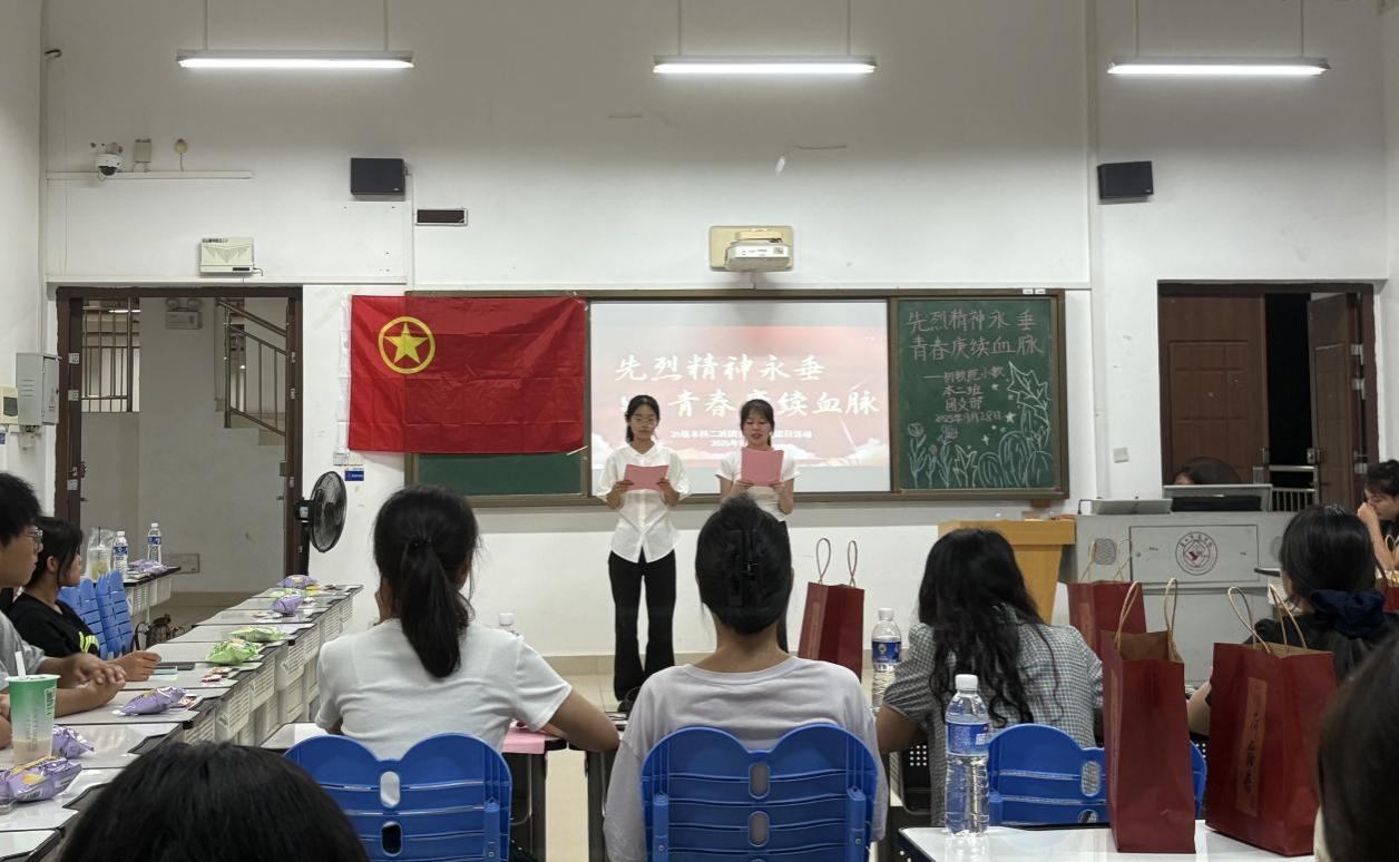 为强化班级凝聚力,引导青年学子坚定理想信念,9月28日晚,2025级本科二班在五合校区文综104室开展“先烈精神永垂,青春赓续血脉”主题团课活动。