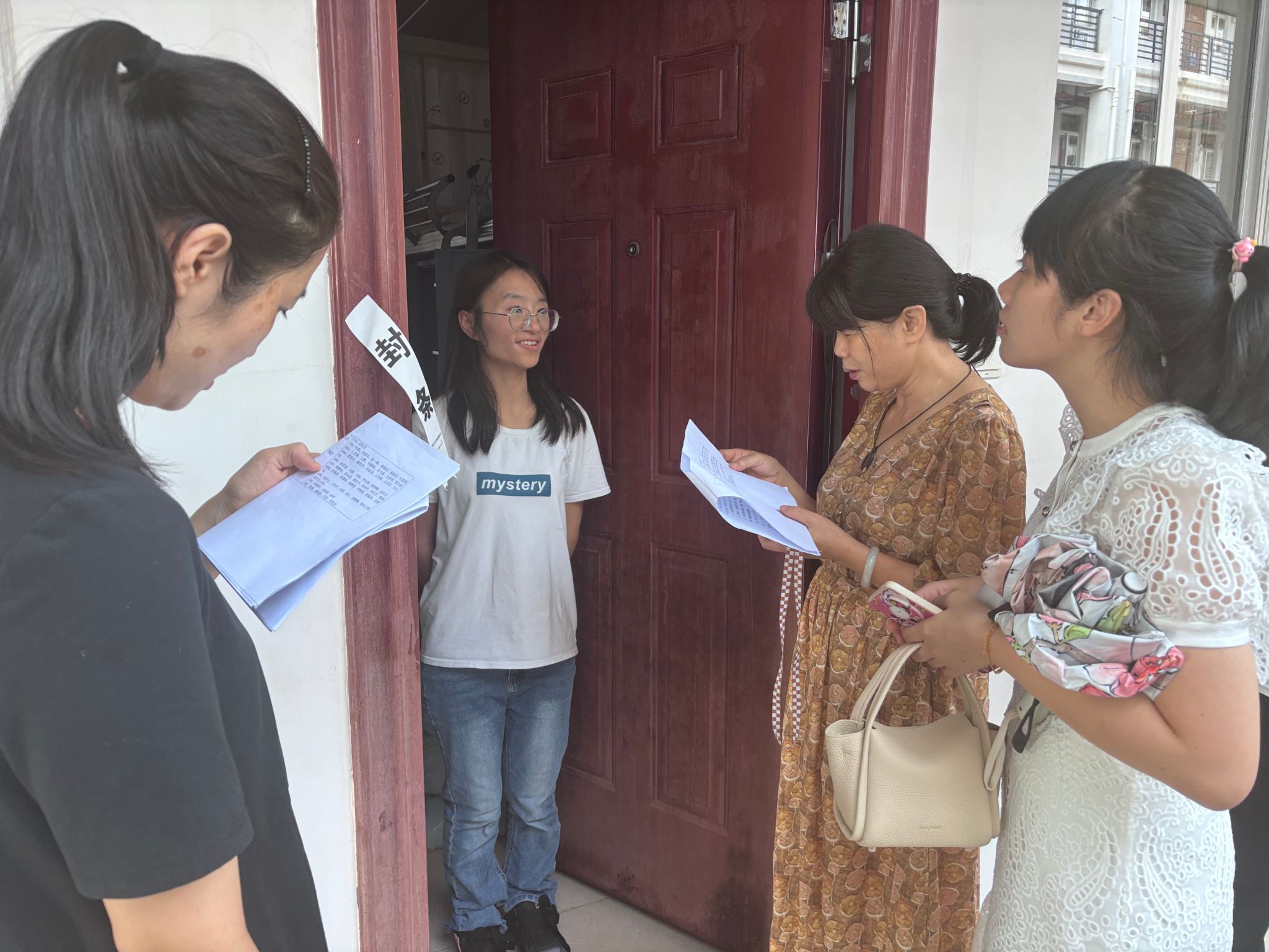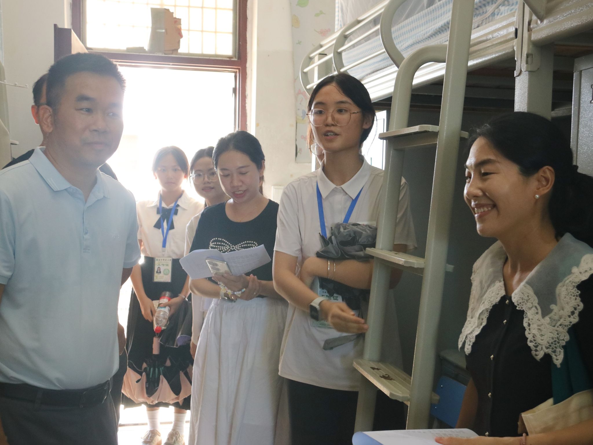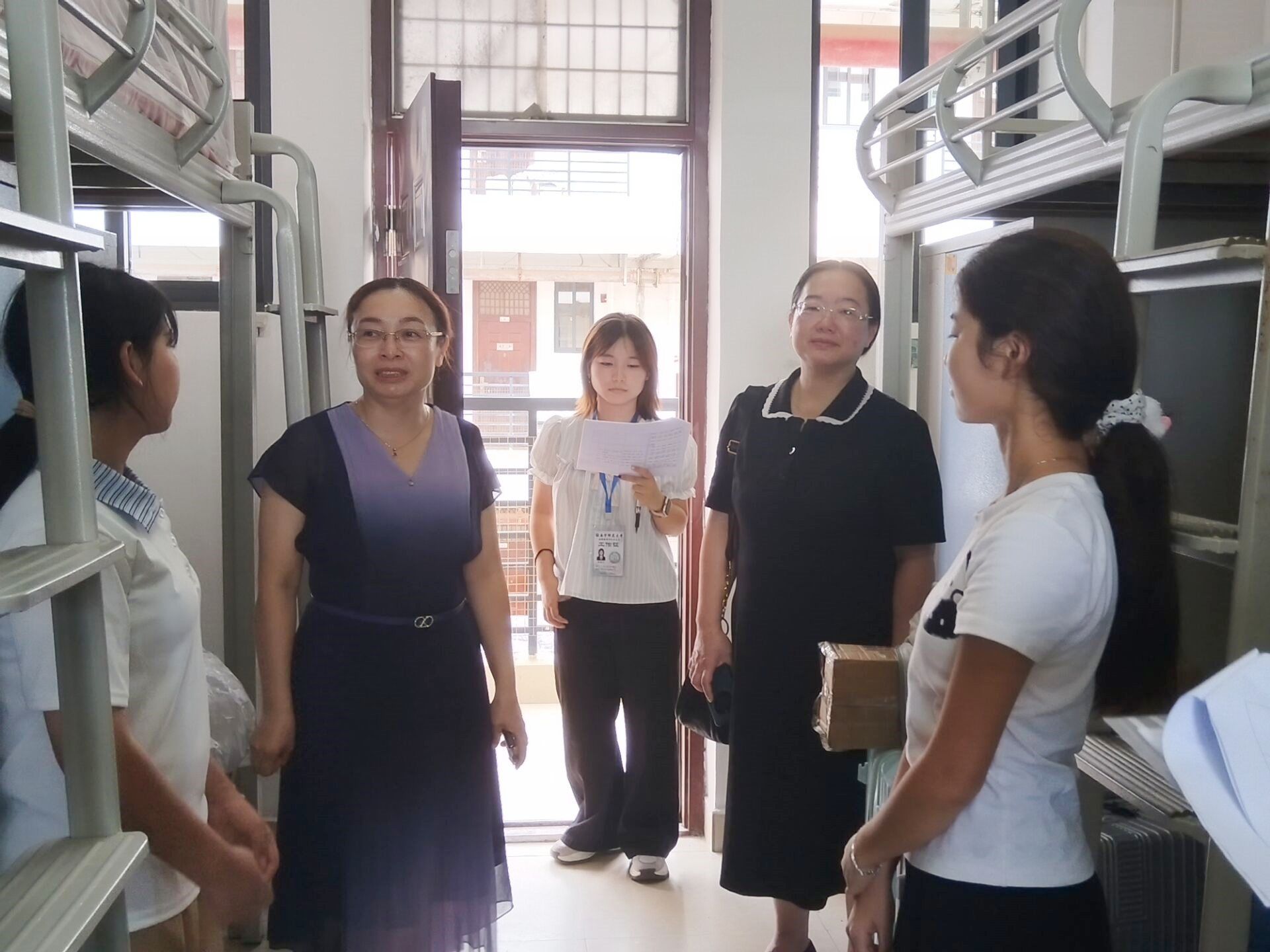 9月6日下午,公司党政领导班子、系主任、新生班主任、辅导员分五组走访公司2025级新生宿舍。