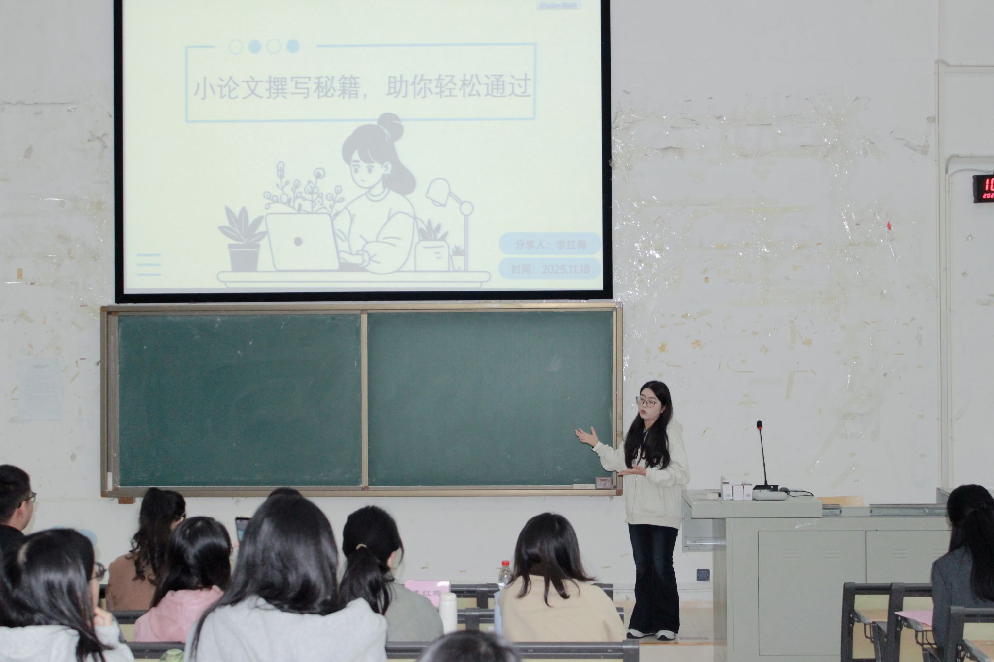 活动伊始,主持人就本次活动进行简要介绍并组织观看警示教育视频,强化研究生们对学术诚信、成果原创性的认知。随后,三位研究生代表结合自身经历,传授宝贵的实践经验。其中,梁倩同学结合全国“田家炳杯”师范生教学技能大赛经历,梳理备赛方法与实战技巧;杨培坤同学聚焦学术成果产出,分享论文投稿与学术报告参赛心得;李红梅同学则详解论文写作技巧与投稿策略。最后,在交流互动环节,同学们积极提问,研究生代表们耐心解答,现场氛围热烈而融洽。活动尾声,王艳芳老师进行总结。她勉励同学们在教学技能竞赛、学术会议交流及论文发表等领域,开辟自己的赛道,提升专业素养。