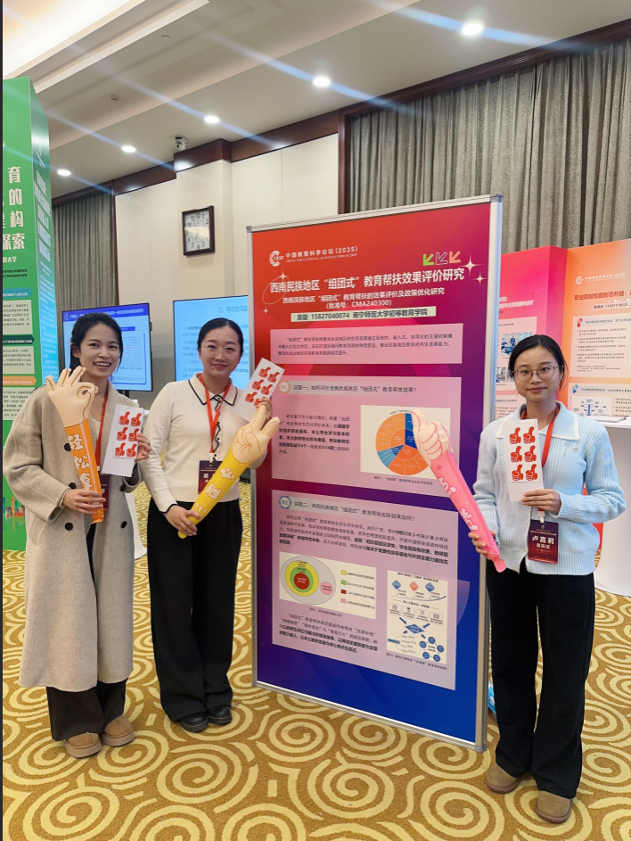 太阳成集团tyc122cc“西南民族地区‘组团式’教育帮扶的效果评价及政策优化研究”课题组应邀出席“教育公平圆桌对话”平行模块,并参与学术海报专场。学术海报专场活动紧扣“智能时代中国教育学知识重建”核心主题,通过海报展示、学者演讲、互动交流与专家评选等多元形式,引发了与会学者的积极对话。课题组在学术海报活动现场展示了《西南民族地区“组团式”教育帮扶效果调查》的阶段性研究成果。