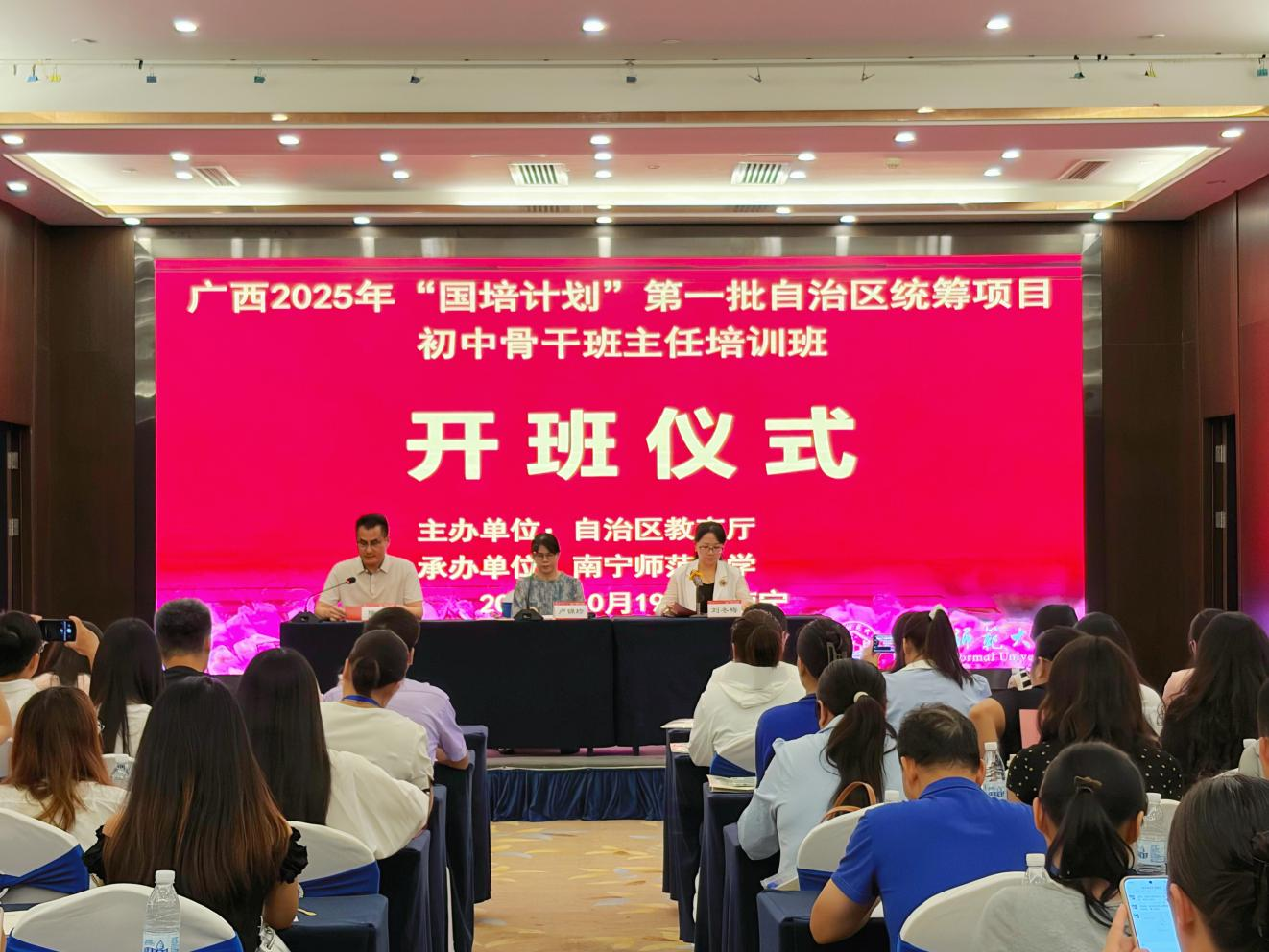 为进一步提升广西初中骨干班主任的专业素养与班级管理能力,10月19日下午,由自治区教育厅主办、太阳成集团tyc122ccvip承办的“广西2025年“国培计划”第一批自治区统筹项目——初中骨干班主任培训班”在南宁顺利开班。太阳成集团tyc122cc副经理卢锦珍、项目首席专家兼教学班主任刘冬梅、太阳成集团tyc122ccvip小学教育研究中心副主任陈强及来自广西各地的120位初中骨干班主任参加了此次培训班的开班。