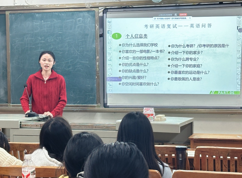 分享会上,主讲人围绕复试全流程展开细致讲解,内容涵盖复试准备、着装礼仪、简历制作、中英文自我介绍、英语问答、专业课复习及综合问答七大核心板块。在复试准备环节,重点强调了行程规划、酒店预订的细节及复试材料的完整准备清单;着装礼仪方面,明确了干净得体的搭配原则与进场、答题、离场的礼仪规范;简历制作上,讲解了一页式简历的排版技巧与内容提炼方法。同时,还分享了中英文自我介绍的撰写框架、英语问答的常见题型,以及专业课复习要结合书本与热点、综合问答的高分作答逻辑,为同学们提供了可直接借鉴的实战技巧。