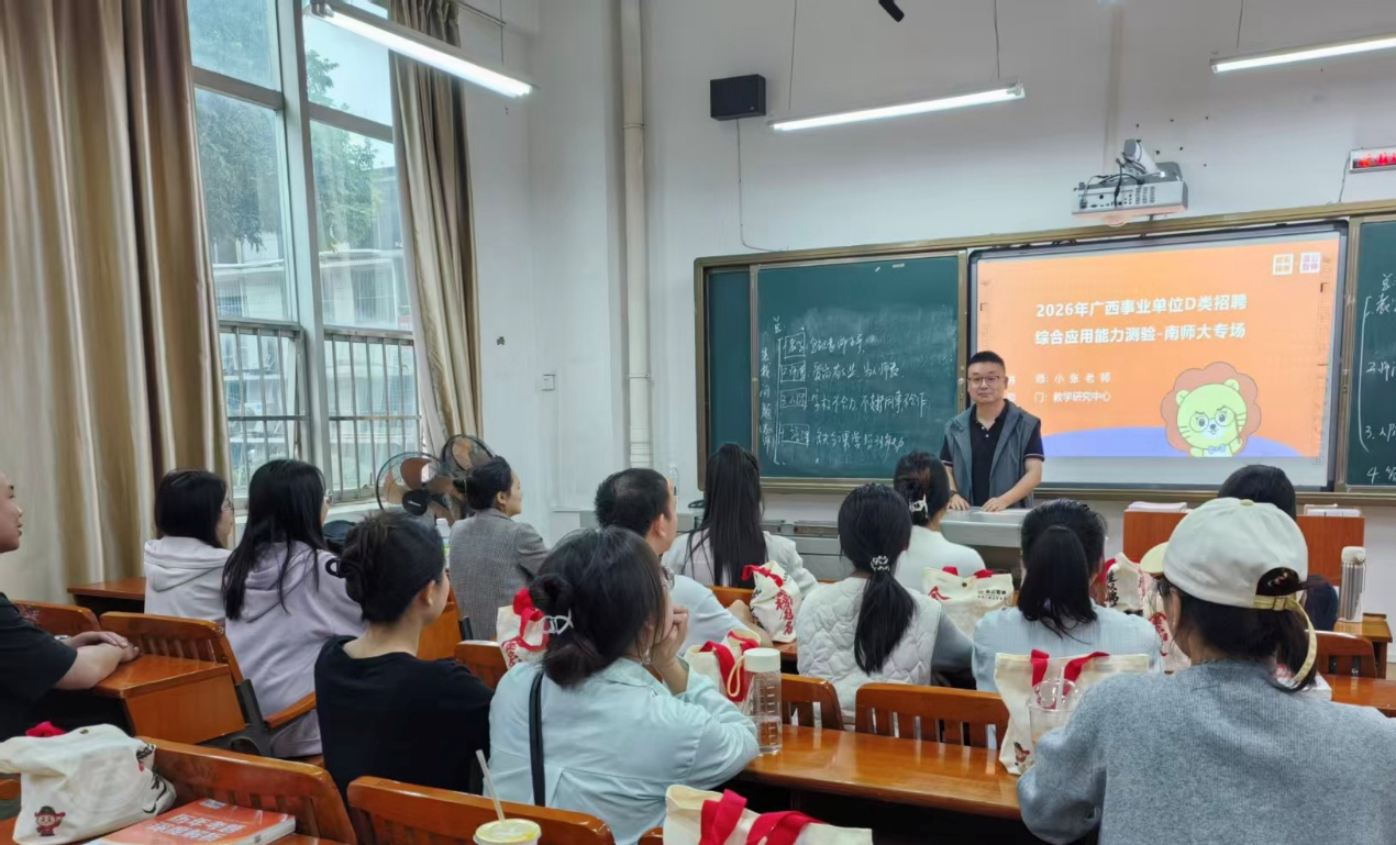 为深入推进毕业生就业指导服务工作,切实提升公司员工事业单位编制考试应试能力,助力高质量就业,3月25日至26日,由集团员工就业中心主办、太阳成集团tyc122cc承办的2026年事业单位D类考试考前冲刺课在明秀校区文星楼109室顺利开讲。本次培训特邀张旭年、李伟军两位资深讲师,吸引众多已报考及有意向报考的学子到场学习。