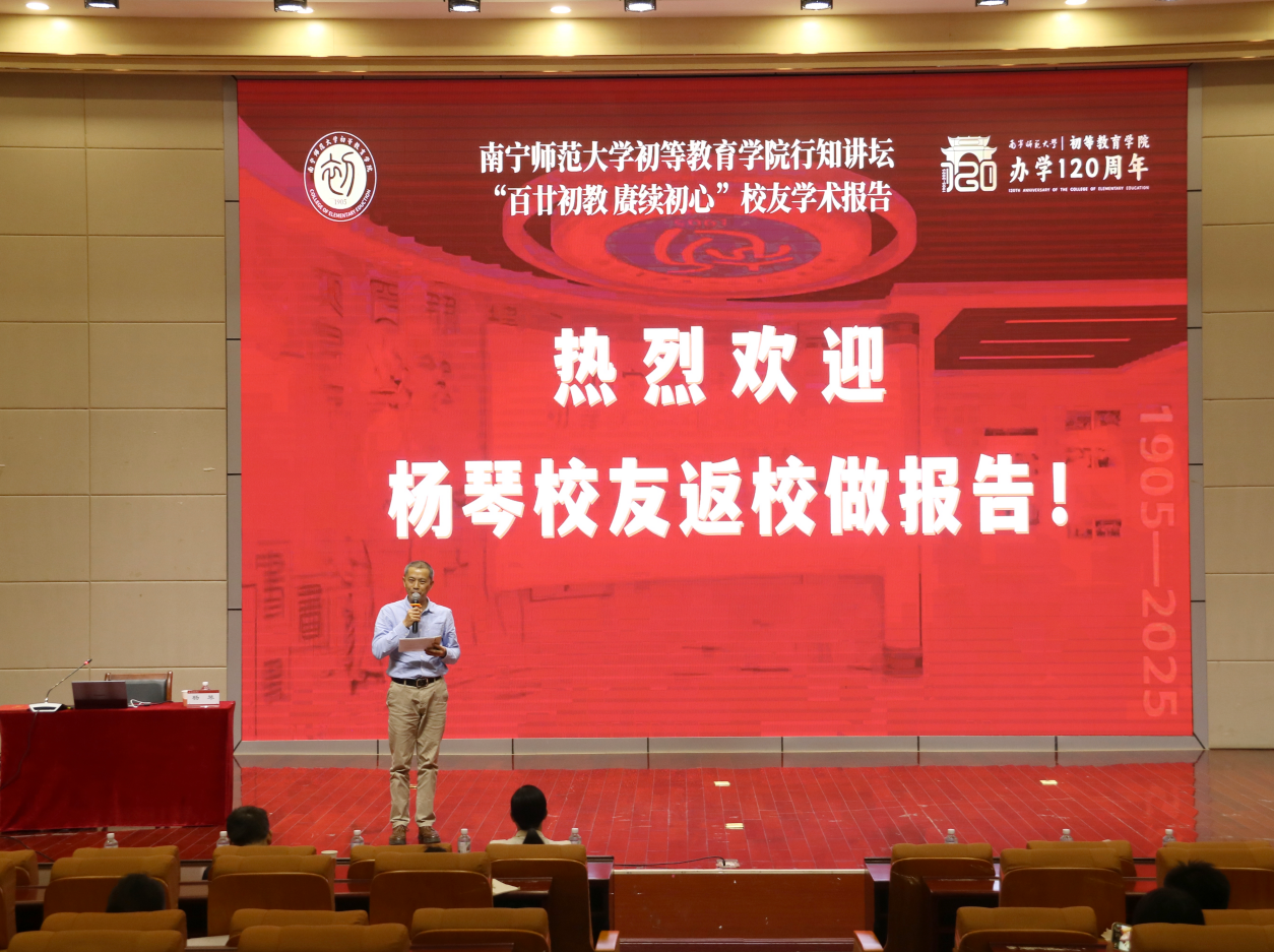 11月11日晚,太阳成集团tyc122cc“百廿初教 赓续初心”员工系列报告第五讲在五合校区文楼114学术报告厅开讲。本次报告特邀公司2004级优秀员工、高级教师杨琴返校主讲,太阳成集团tyc122cc小教系主任林国兵主持,四百余名师生代表到场聆听。