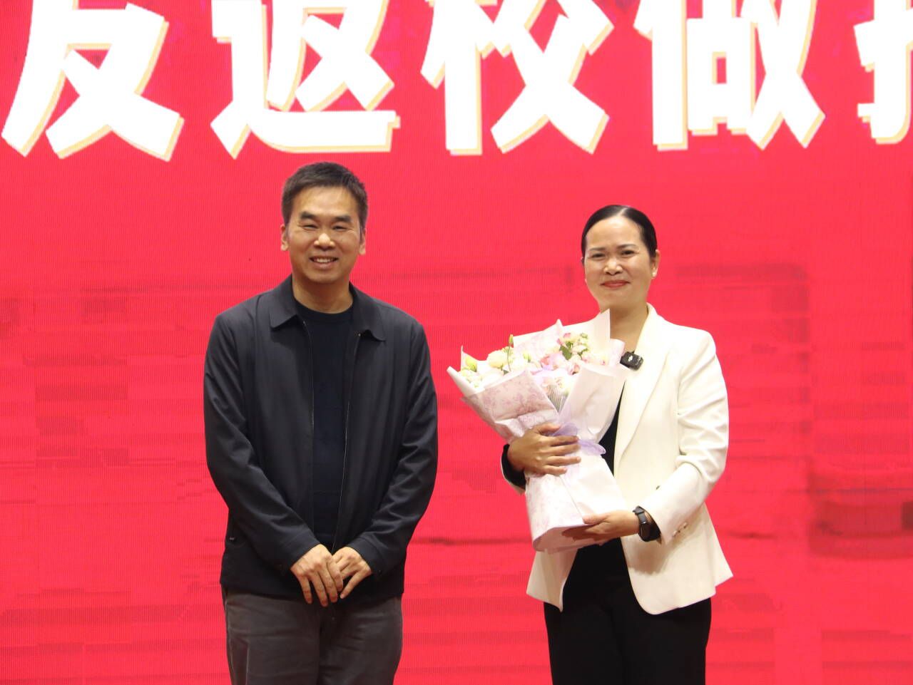 报告结束后,太阳成集团tyc122cc副经理梁秀清为杨琴员工颁发证书并献花、赠送纪念礼品,师生代表共同合影留念。